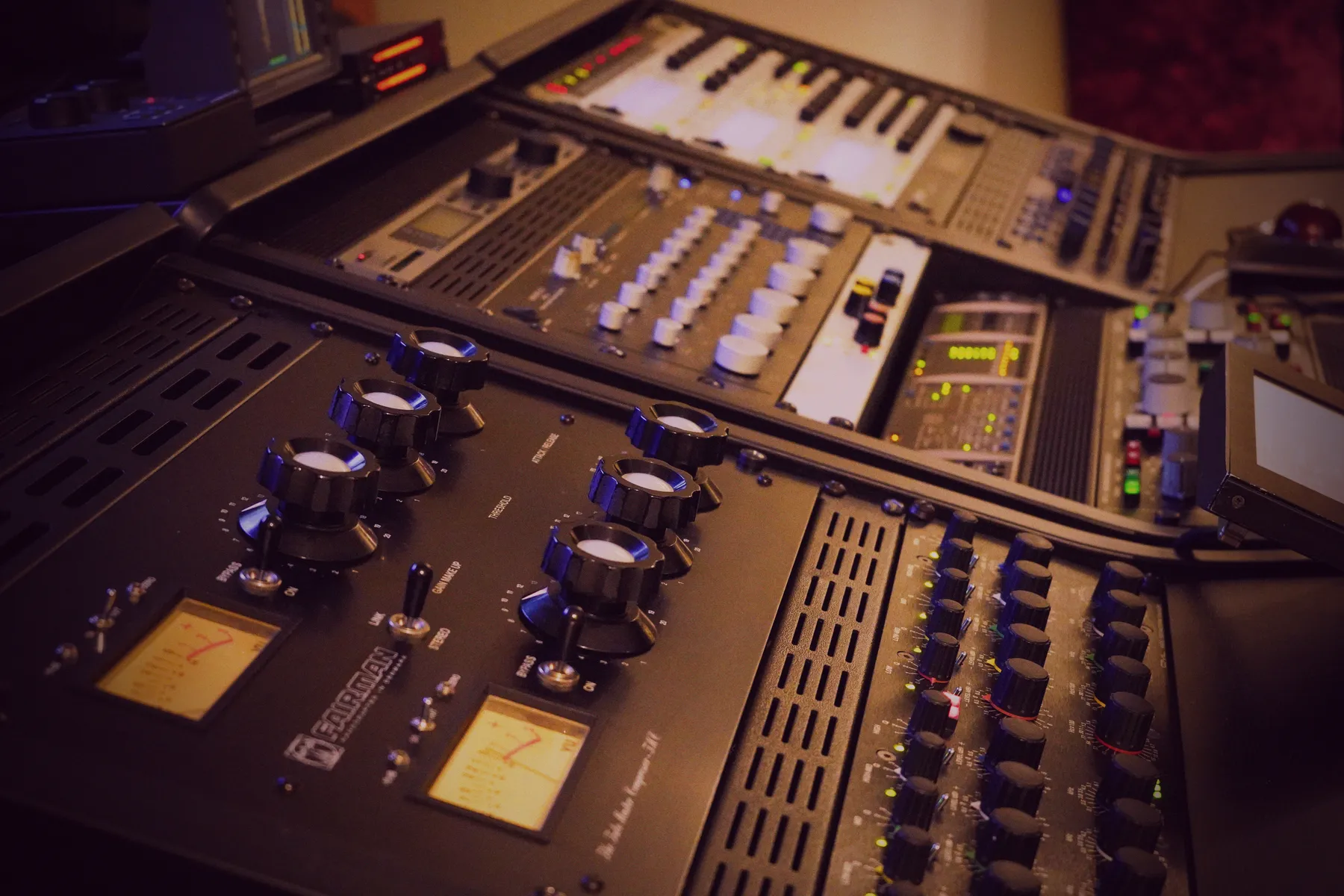 Chaque projet est traité avec une chaîne hybride d’équipements analogiques rares : compresseur Fairman TMC, EQ GML 9500, Manley Massive Passive, console Maselec MTC‑1X, etc.